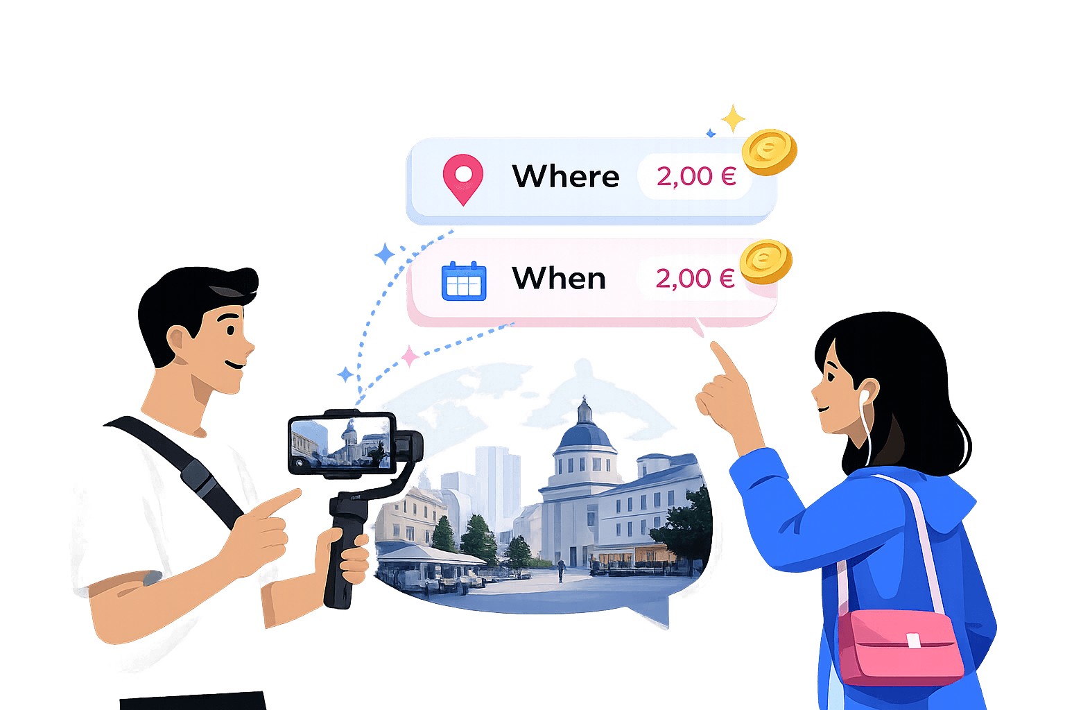 Podrás establecer el importe de recompensa que desees por desvelar a los viajeros la ubicación u horarios del contenido que muestras en tus videos.